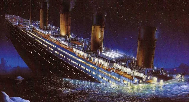 | Gambar ilustrasi tenggelamnya kapal Titanic |